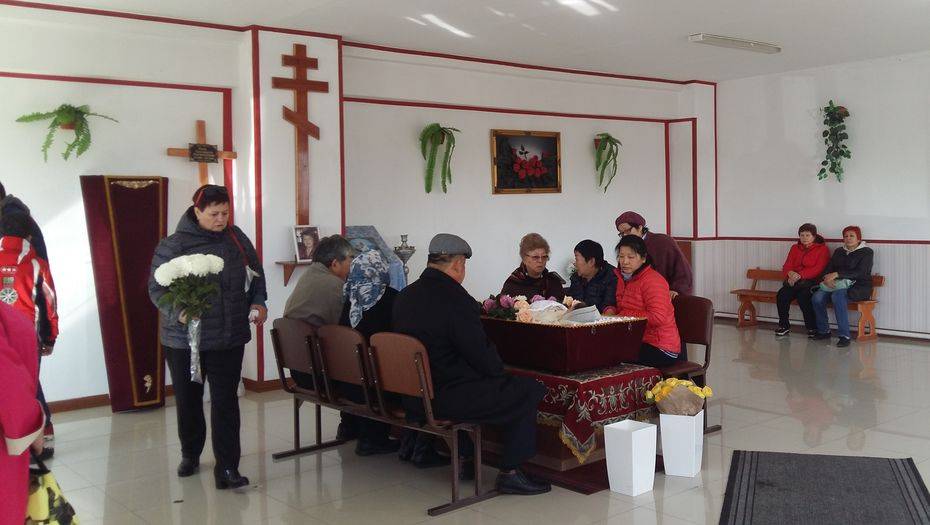 Незадолго до начала траурной церемонии Юрия Пака привезли к похоронному бюро. Затем его под конвоем завели в зал и разрешили проститься с матерью. Поддержать учителя приехали его коллеги и ученики. Выходя из ритуального зала здания, Юрий Пак успел поблагодарить всех собравшихся.