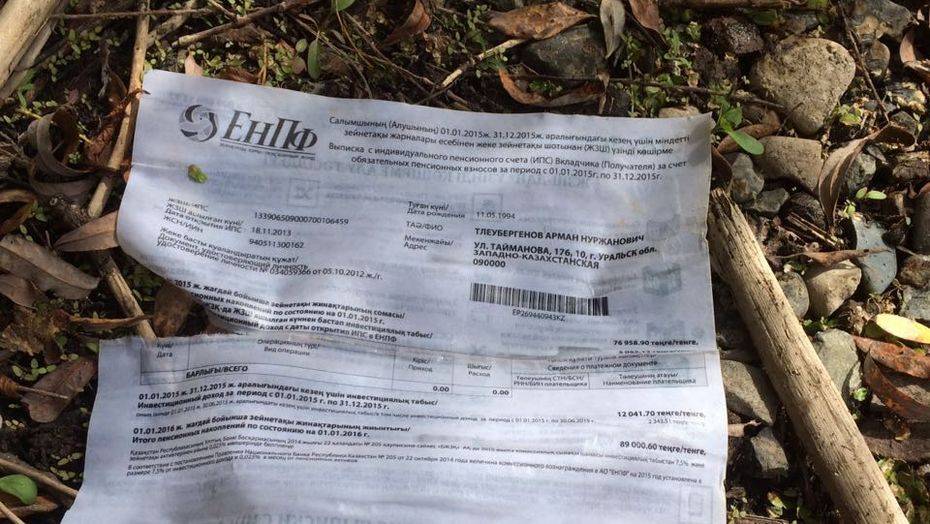 Напомним, выброшенные пенсионные выписки с личными данными сотен казахстанцев нашли в Уральске