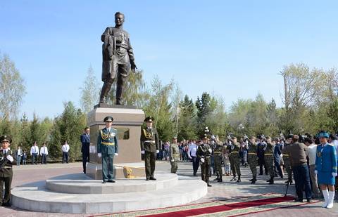 Ранее в городах Казахстана открылись памятники еще нескольким казахстанцам-Героям Советского Союза. Сегодня в Астане Президент Казахстана Нурсултан Назарбаев открыл памятник Ивану Панфилову. Сегодня также в Актобе открыли памятник герою Великой Отечественной войны Малкеджару Букенбаеву. 6 мая в Таразе был установлен памятник герою войны, снайперу Ыбырайыму Сулейменову. Днем ранее в Мактааральском районе ЮКО появился памятник единственной женщине-снайперу из Казахстана Алие Молдагуловой.