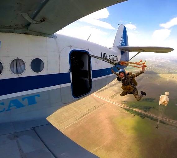 А в июле парашютист из Караганды сделал необычное поздравление в небе. Мужчина по имени Виталий поднялся в небо на самолёте АН-2 и прыгнул с парашютом. При этом он захватил с собой плакат с надписью: "Любимая, спасибо за дочку".