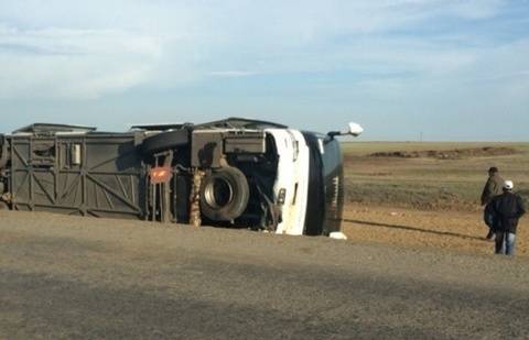 Пассажирский автобус с 45 пассажирами, шестеро из которых дети, перевернулся утром на трассе Павлодар - Экибастуз.