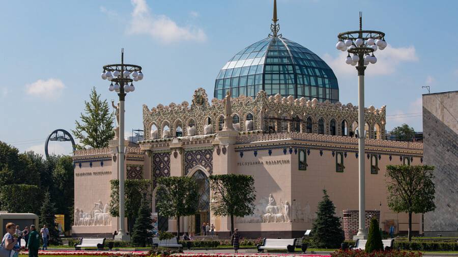 Павильон "Казахстан" на ВДНХ открылся в ноябре 2021 года после масштабной реставрации. Зданию вернули его исторический облик 1954 года.