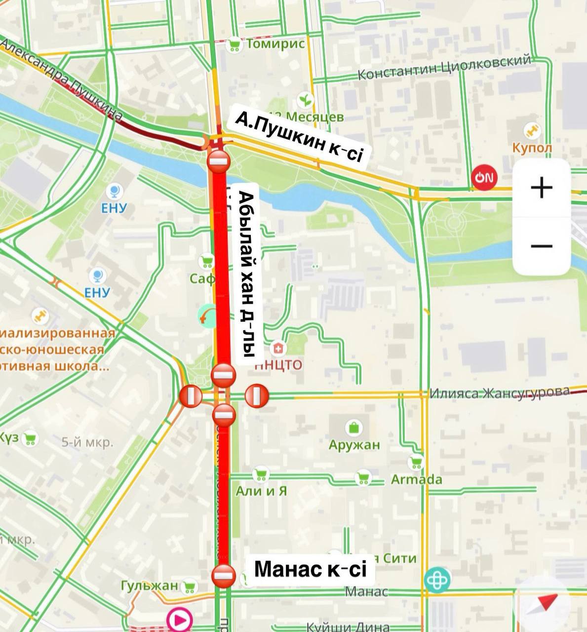 Также с 4 по 7 июня на проспекте Абылай хана проведут работу по устройству верхнего слоя дорожного покрытия. В связи с этим участок от улицы Манаса до улицы Пушкина полностью перекроют для авто.