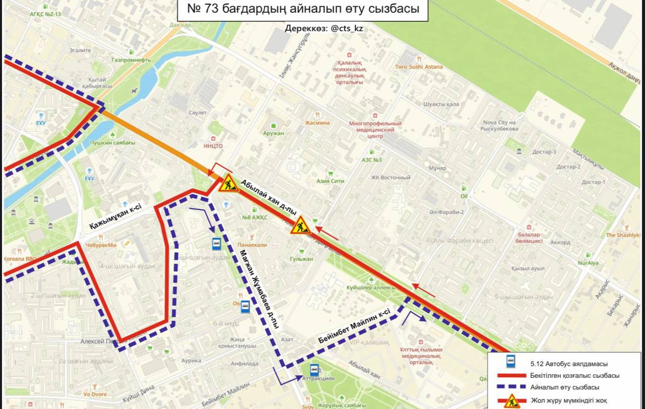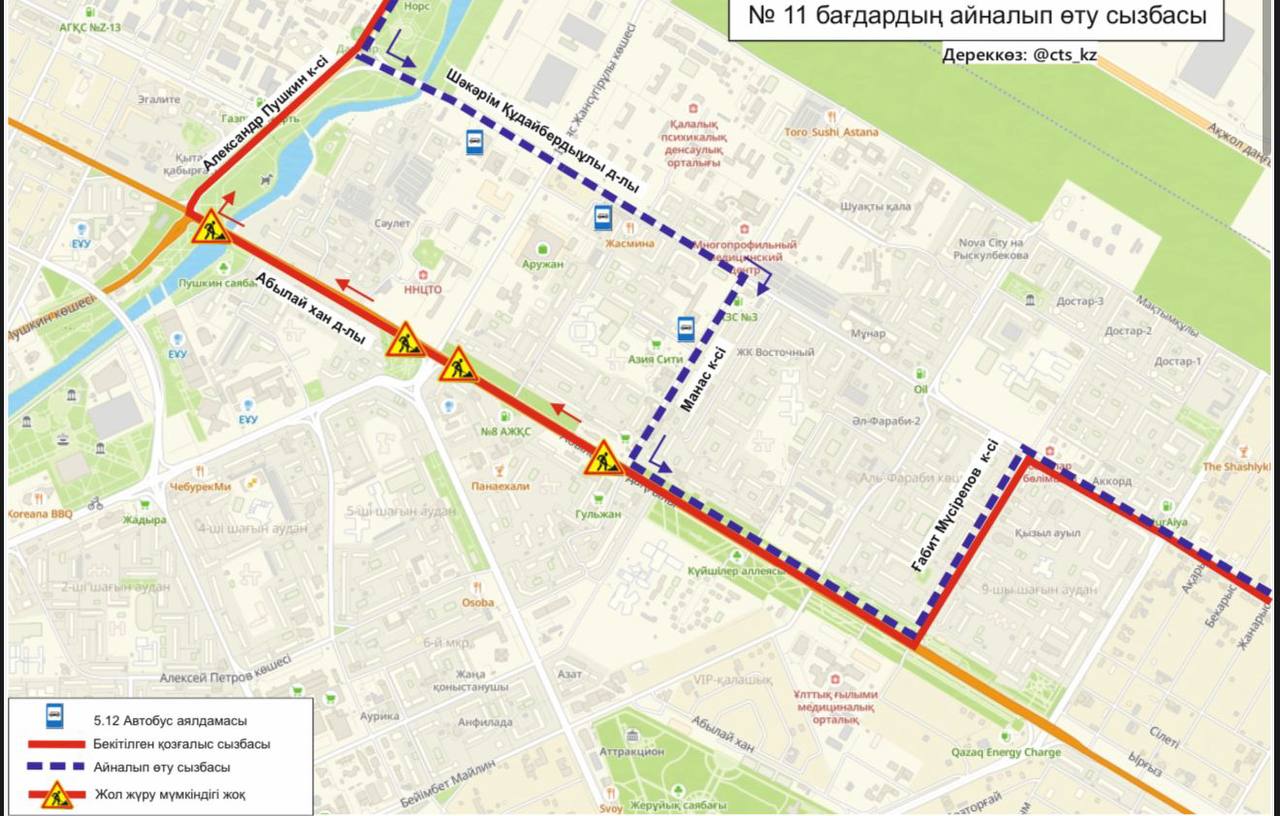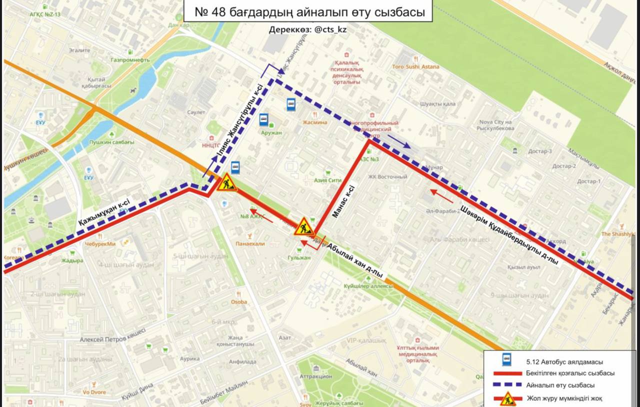 В Астане с 4 по 5 июня полностью перекроют перекрёсток проспекта Абылай хана и улицы Жансугурова, сообщили в управлении транспорта и развития дорожно-транспортной инфраструктуры города.