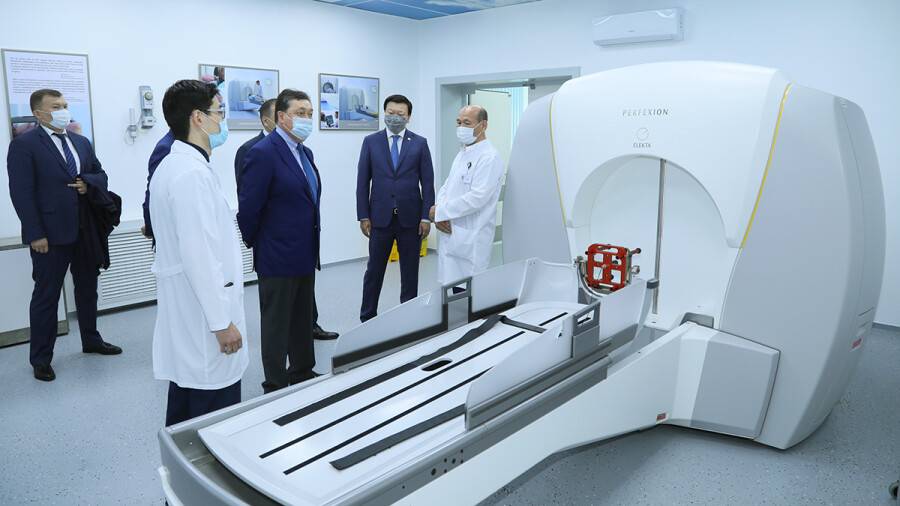 Первый в Центральной Азии "Гамма-нож" установили в Национальном центре нейрохирургии РК. Премьер-министр РК Аскар Мамин посетил лечебное учреждение, где ознакомился с работой нового отделения радиологии и радиохирургии. Главе правительства презентовали современный комплекс "Гамма-нож" производства Швеции, сообщает пресс-служба премьер-министра.