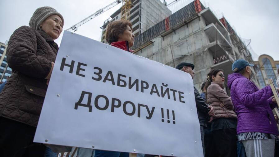 Месяц назад жители жилого комплекса "Куат" вышли на митинг с требованием снести недавно построенную 17-этажку и вернуть им дорогу, по которой они много лет выезжали на улицу Розыбакиева. Представители местных исполнительных органов заявили, что это невозможно, ведь у застройщика есть вся необходимая документация.