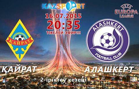 Прямую трансляцию матча Лиги Европы "Кайрат" (Алматы) - "Алашкерт" (Мартуни, Армения) можно будет посмотреть сегодня в 20:35 на телеканале "Kazsport".