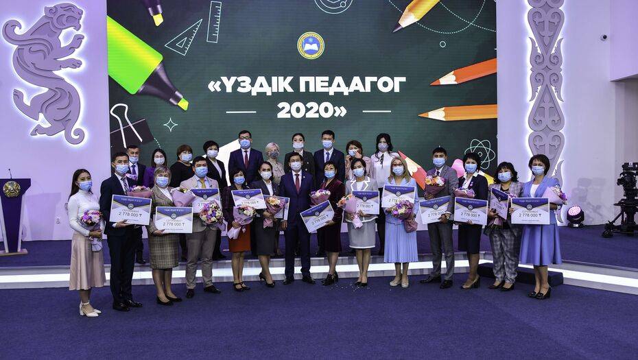 В Казахстане определили победителей ежегодного конкурса "Лучший педагог-2020". Каждому победителю вручили нагрудные знаки и денежный приз в размере 1000 МРП – 2 млн 778 тысяч тенге.