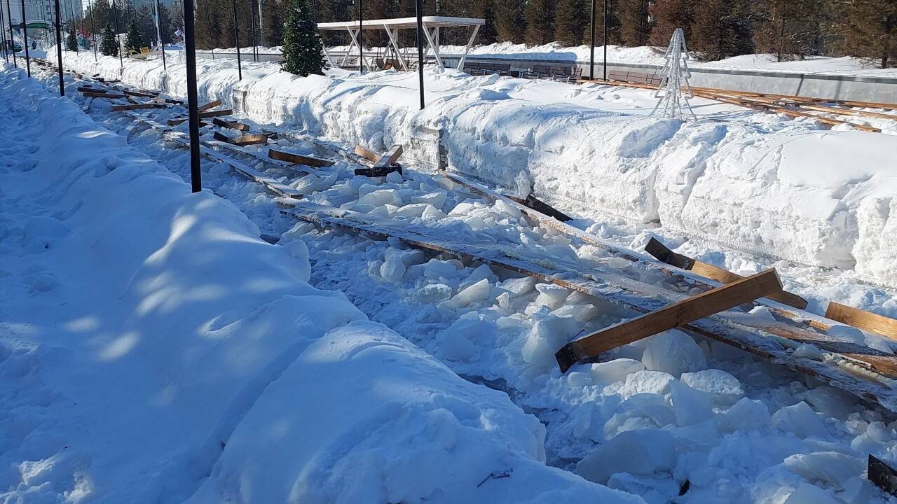 "В Астане в центральном парке демонтировали каток. Рабочие сказали, что начали демонтировать три дня назад. 17 февраля каток фактически полностью был разрушен. На вопрос "кто решил зимой убирать каток, когда он благополучно мог радовать астанчан ещё как минимум месяц", рабочие ответили, что это указание акимата. Ещё месяц можно было кататься на этом катке, сейчас парк пустой, лишились рабочих мест порядка 30 человек, работавших в прокате коньков и мини-кафе. А самое главное – лишили радости и и возможности заниматься, укрепить здоровье тысячи астанчан, которые ежедневно катались на этом катке. Сейчас парк абсолютно пустой, хотя всего неделю назад сюда приходили не менее 1000 человек в субботу и воскресенье", – написал читатель.