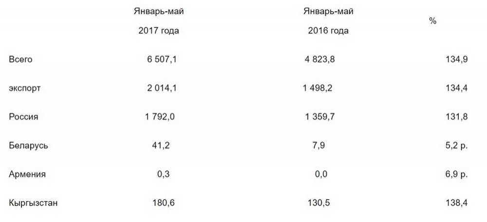 На 34,9% увеличилась взаимная торговля Казахстана со странами ЕАЭС в январе-мае этого года, сообщает Министерство национальной экономики. Всего за пять месяцев 2017 года взаимная торговля составила 6 млрд 507 млн долларов.
