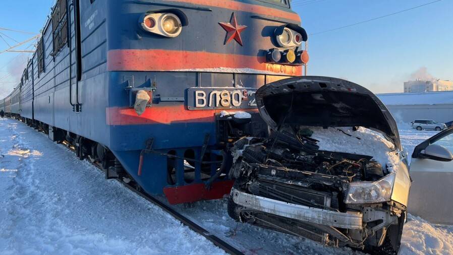 На железнодорожном переезде в районе специализированного ЦОНа состав наехал на автомобиль Chevrolet Cruze. Водитель иномарки пытался проскочить на красный свет.