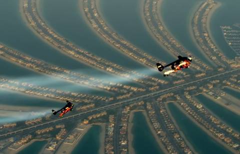 После полёта над пустыней Росси и Реффет совершили несколько сложных манёвров над искусственными островами Пальм и, наконец, пролетели буквально в паре метров от Бурдж-Халифа, самого высокого небоскрёба в мире.