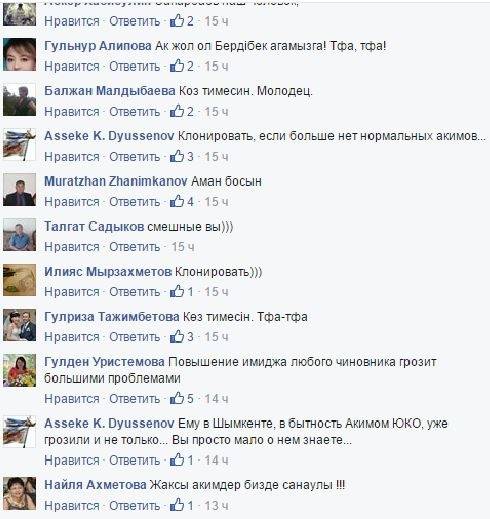 Пользователь Facebook, известный в Караганде общественный деятель Айткожа Фазыл пишет: "Сапарбаев один, а областей четырнадцать. Что делать"?
