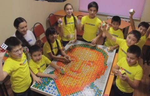 Гора кубиков спустя неделю превратилась в разноцветные ряды с очертаниями Назарбаева на специальной доске. Директор центра развития Жулдыз Рамазанова уверяет, что когда детям предложили собрать портрет Президента, они с удовольствием откликнулись, очень быстро и увлечённо начали его собирать, понимая, что Глава государства – символ республики.