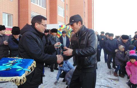 "Весной, когда к нам пришла большая беда, представители акимата обещали нам сделать всё возможное и построить для наших сельчан благоустроенный дом. Мы так переживали, потом обрадовались, что дома начали строить. Теперь получаем ключи от новых квартир - для нас это огромное счастье! И нам вдвойне приятно, что этот для нас счастливый день совпал с Днём Первого Президента. Благодаря нашему Елбасы мы получили от государства столь огромную помощь", - житель поселка Аганас Ерден Абаев.