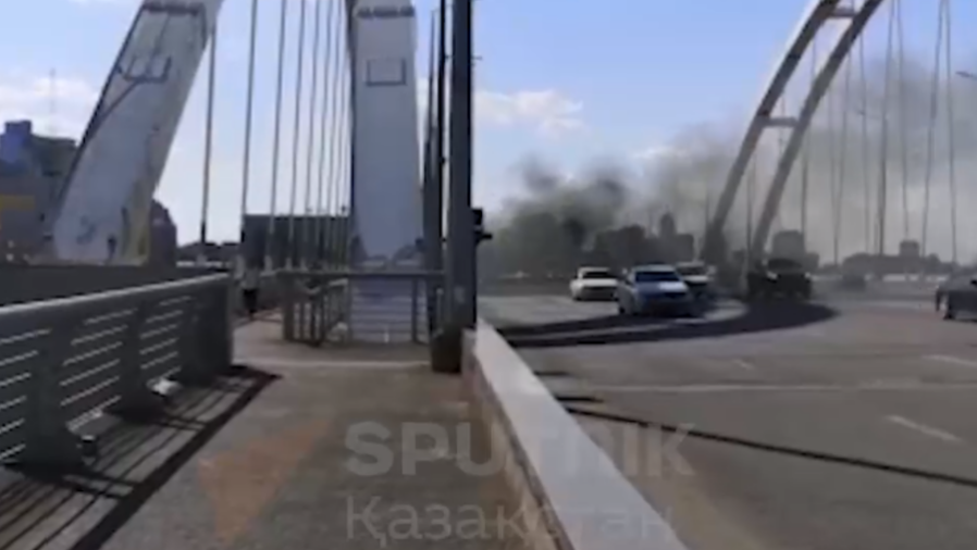 В Нур-Султане очевидцы сняли на видео пожар на мосту "Архар" по улице Сарайшык. На кадрах видны клуба дыма на проезжей части и пламя при съёмке из-под сооружения.