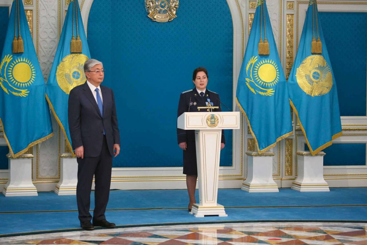 Президент Казахстана Касым-Жомарт Токаев вручил государственные награды представителям силовых структур накануне Дня защитника Отечества и Дня Победы.