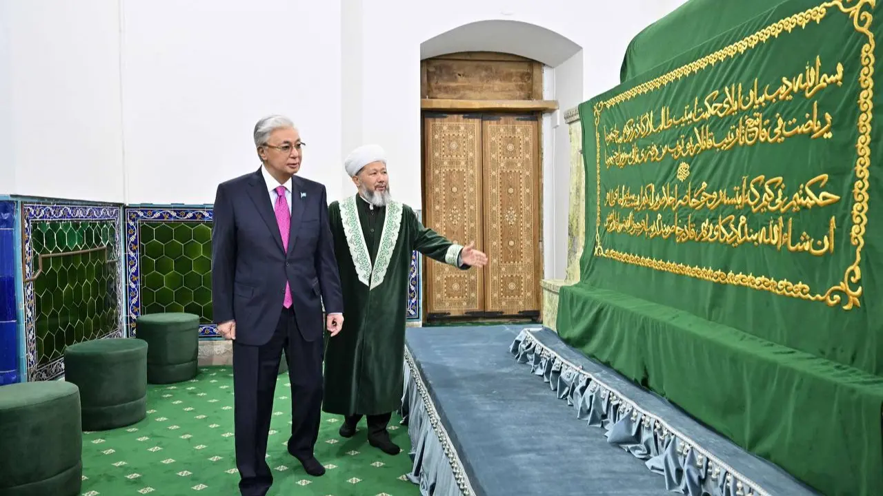 Визит президента в регион начался с посещения одной из величайших духовных и историко-культурных святынь тюркского мира – мавзолея Ходжи Ахмеда Яссауи, внесенного в список Всемирного наследия ЮНЕСКО.