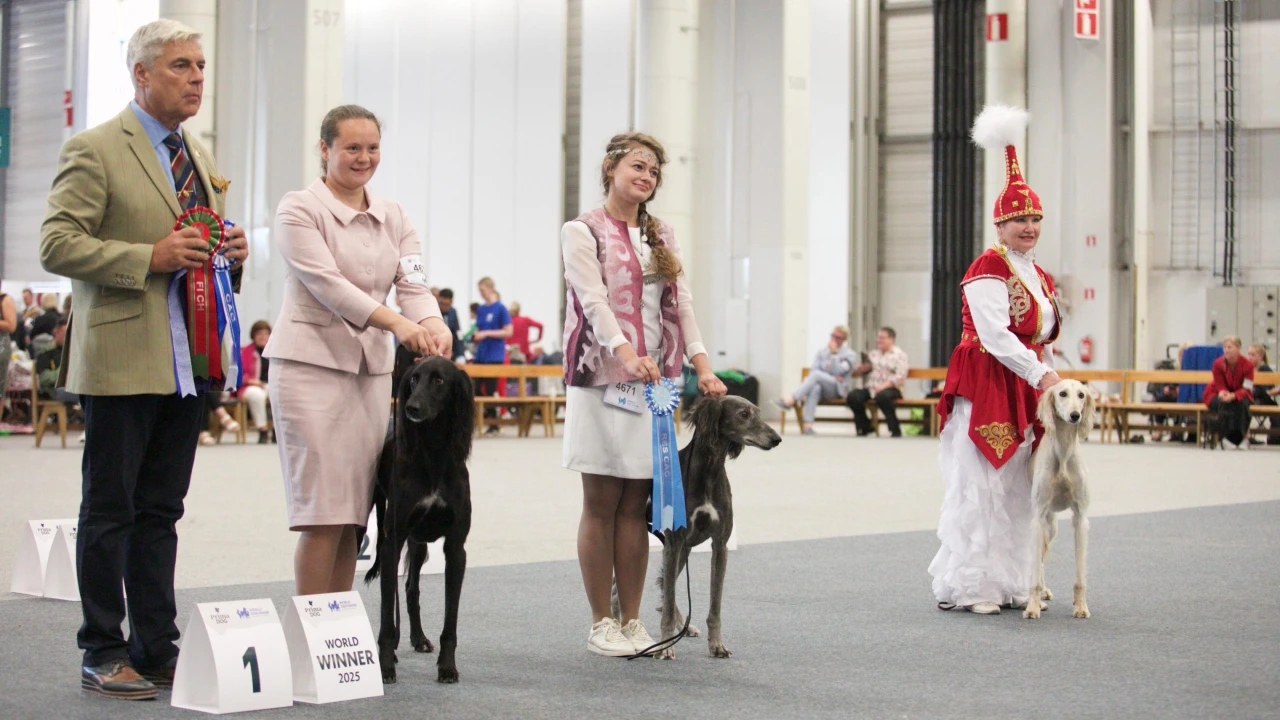 Казахские тазы, впервые официально представленные в качестве самостоятельной породы, признанной FCI, заняли несколько призовых мест на Всемирной выставке собак 2025 года в Хельсинки.
