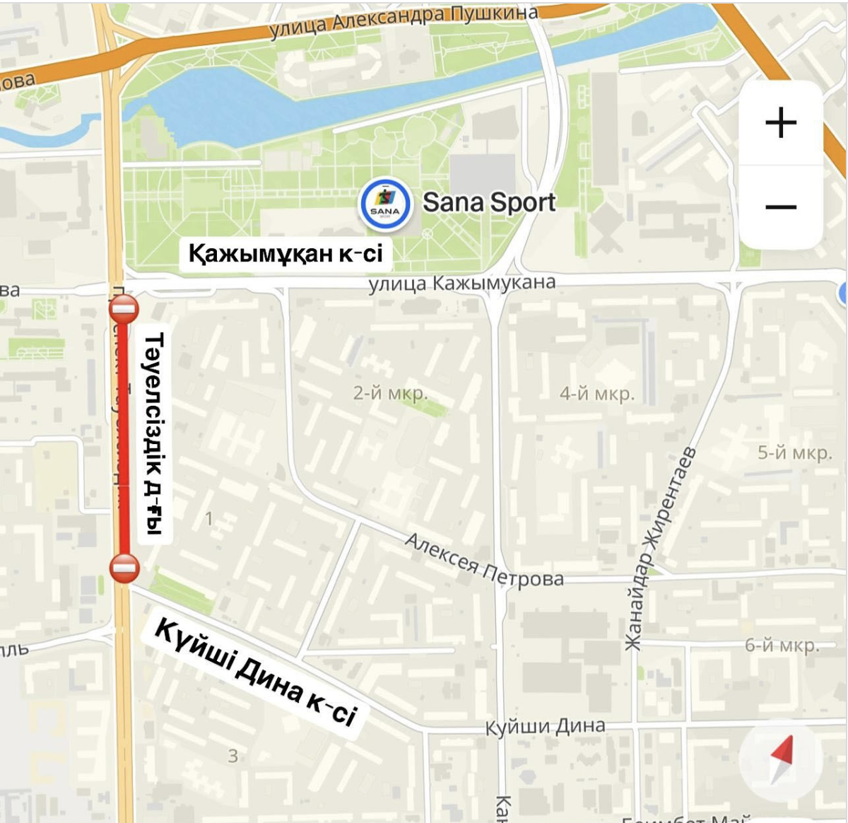 С 15 по 20 мая проспект Тауелсиздик частично перекроют в Астане, сообщили в управлении транспорта и развития дорожно-транспортной инфраструктуры города.