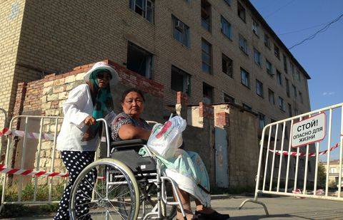 Напомним, частичное обрушение аварийного общежития семейного типа произошло 31 мая. Вскоре оставшимся без крыши над головой людям власти предоставили временные квартиры в новом, построенном по госпрограмме, доме. При вручении ключей аким объявил, что желающие могут, впоследствии, приватизировать эти квартиры. Однако несколько семей, недовольных квадратурой предлагаемого жилья, отказались переезжать и 13 июня разбили небольшой лагерь прямо под открытым небом, рядом с разрушенным общежитием.