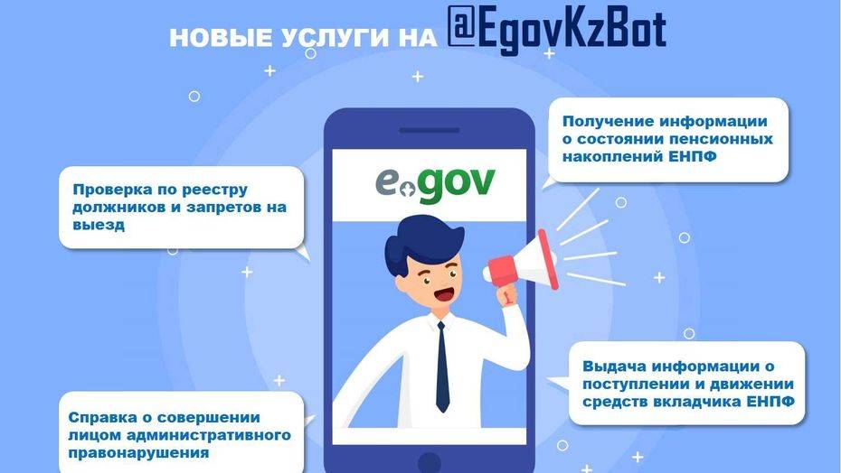 "Затем нужно ввести в строку поиска в Telegram – @EgovKzBot. При помощи отправки заранее определённых команд выбрать необходимую услугу и сервис, ввести данные и подтвердить получение услуги одноразовым паролем, отправленным на мобильный номер", – объяснили в пресс-службе.