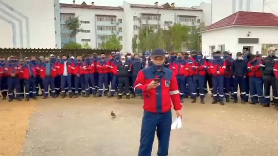 Рабочие требуют зачислить их цех в штат АО "Каражанбасмунай". По их словам, несмотря на выполнение "чёрной" работы, они до сих пор не находятся в официальном штате.