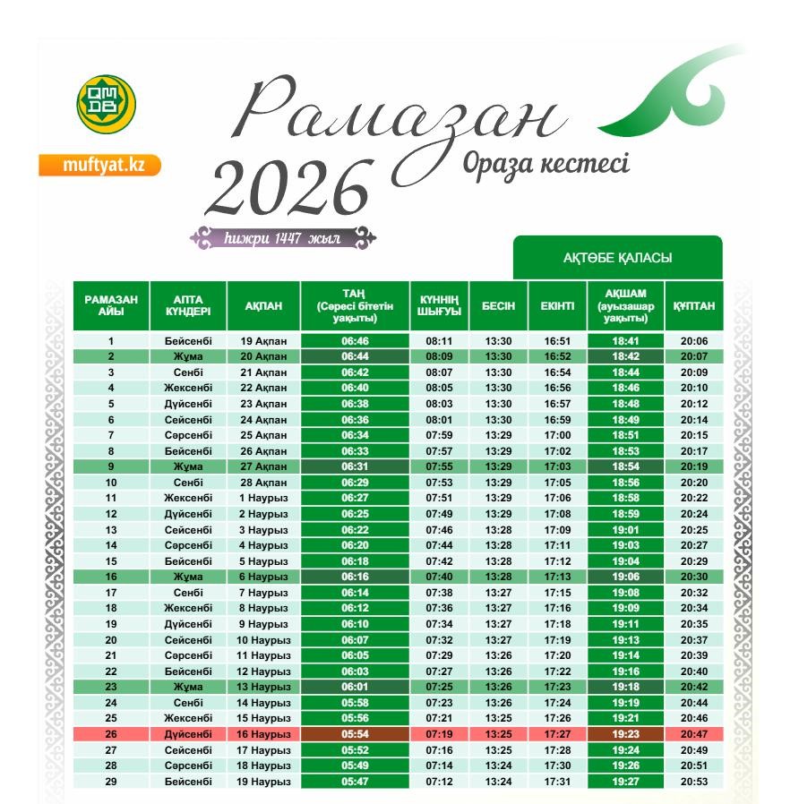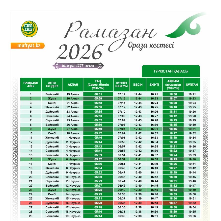 Пост в месяц Рамазан начнётся 19 февраля. Полное расписание Оразы по всем городам опубликовало Духовное управление мусульман Казахстана.