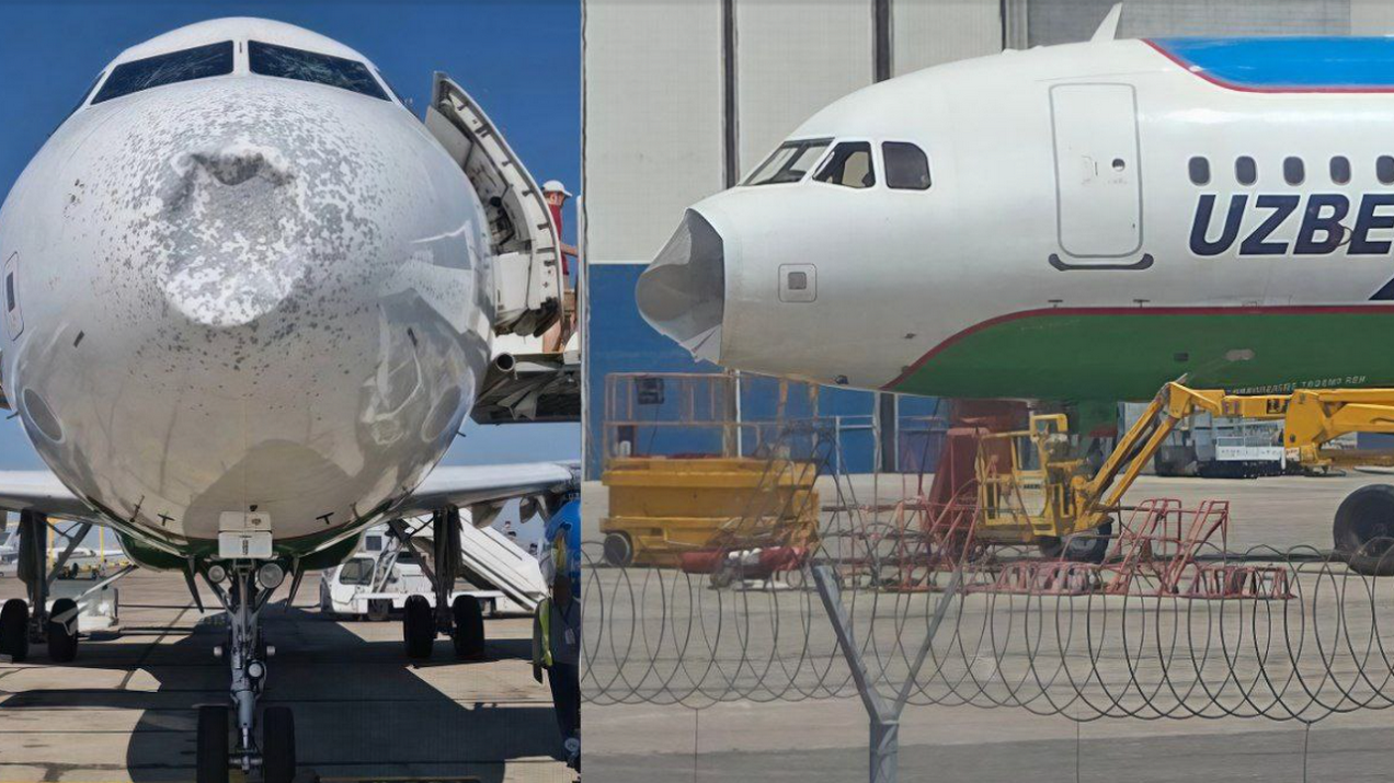 Самолёт Airbus A320 авиакомпании Uzbekistan Airways попал под град и получил повреждения, но это не помешало успешно долететь до пункта назначения.