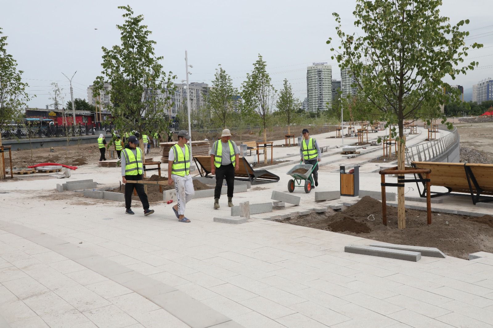 "Грунты здесь тяжёлые, мы их заменили на более устойчивый балласт для таких конструкций. В восточной части берега со стороны Алмалинского района работы полностью завершены. По Ауэзовскому району остались работы по поливочной системе. Когда озеро заполнят водой, проведём гидропосев", – рассказал начальник участка Александр Карандасов.