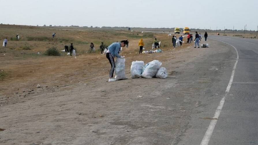 "За несколько дней через пункт пропуска через государственную границу в селе Караозек проехало порядка 3000 автомобилей и более 10 000 людей. Покидавшие страну уклонисты и дезертиры, ожидая несколько суток своей очереди, чтобы проехать через пограничный пункт, оставили после себя груды мусора. В настоящее время ситуация в приграничной зоне стабилизировалась. Очередь из автомобилей практически ликвидирована. И поэтому сегодня было решено провести на этой территории субботник", – сообщил Руслан Бисенов.