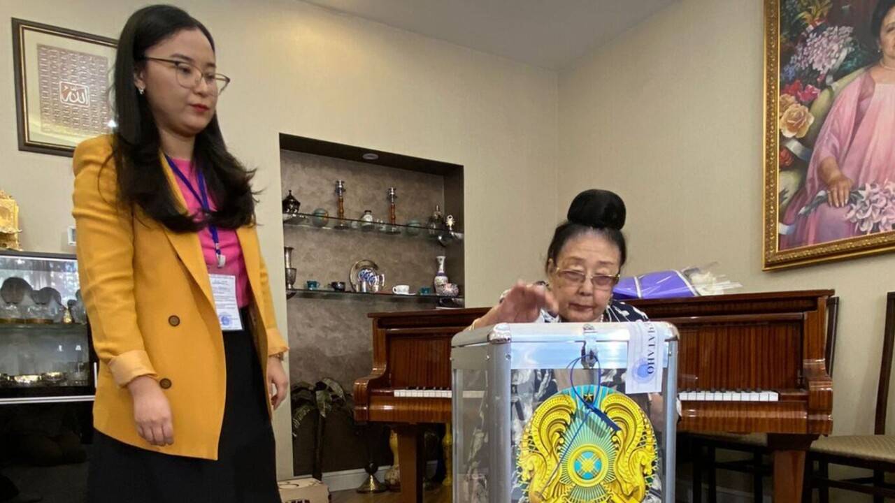 Казахская оперная певица Бибигуль Тулегенова проголосовала на дому. Она всегда принимает участие в выборах, проявляя свою гражданскую позицию.