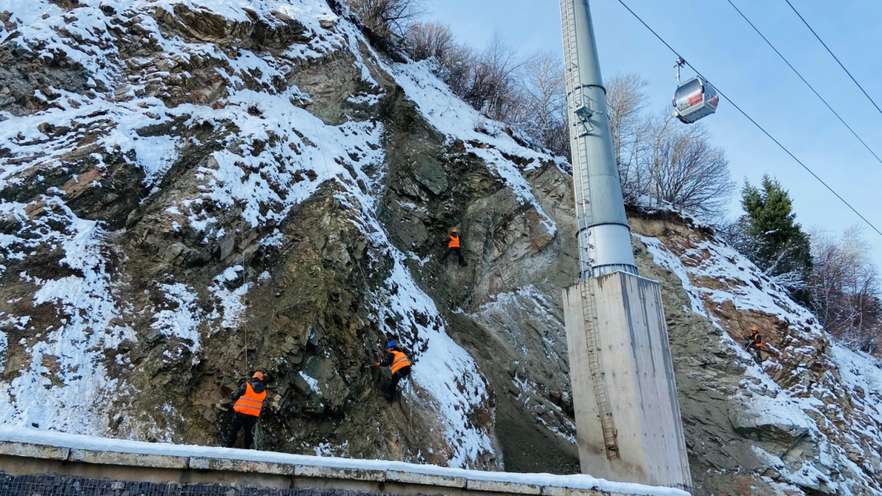 На склонах гор "Мохнатка" и "Горельник" проводят работы по ликвидации последствий камнепада. С 25 октября по настоящий день работы по очистке склона выполнили на 80%. Также проводят укрепление склона с применением буровых установок и строительство ливневой системы. Комплексные работы будут продолжать весь зимний период и завершат осенью 2024 года.