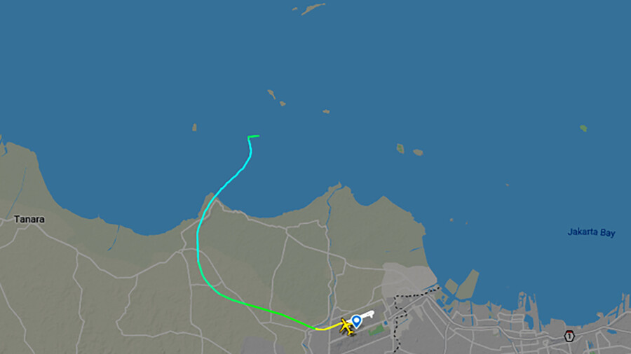 Sriwijaya Air flight #SJ182 lost more than 10.000 feet of altitude in less than one minute, about 4 minutes after departure from Jakarta.https://t.co/fNZqlIR2dz pic.twitter.com/MAVfbj73YN