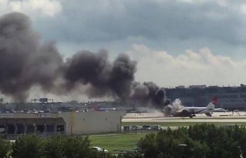 Федеральное управление гражданской авиации США сообщило, что у самолёта произошла утечка топлива перед самым началом взлета. Один пассажир тяжело травмирован - человека уносили на носилках с места происшествия. В общем в ЧП пострадало 15 человек. Левая турбина сгорела почти полностью.
