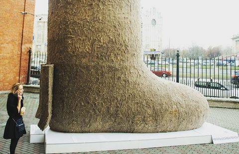 Огромный, и не просто огромный, а самый большой в мире валенок установили к биеннале дизайна во дворе креативного пространства "Ткачи". Его создательница Валерия Лошак входит в Союз художников и Союз дизайнеров России.
