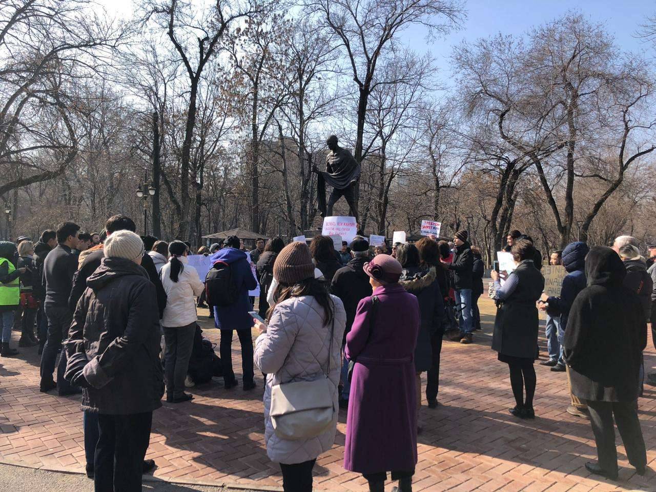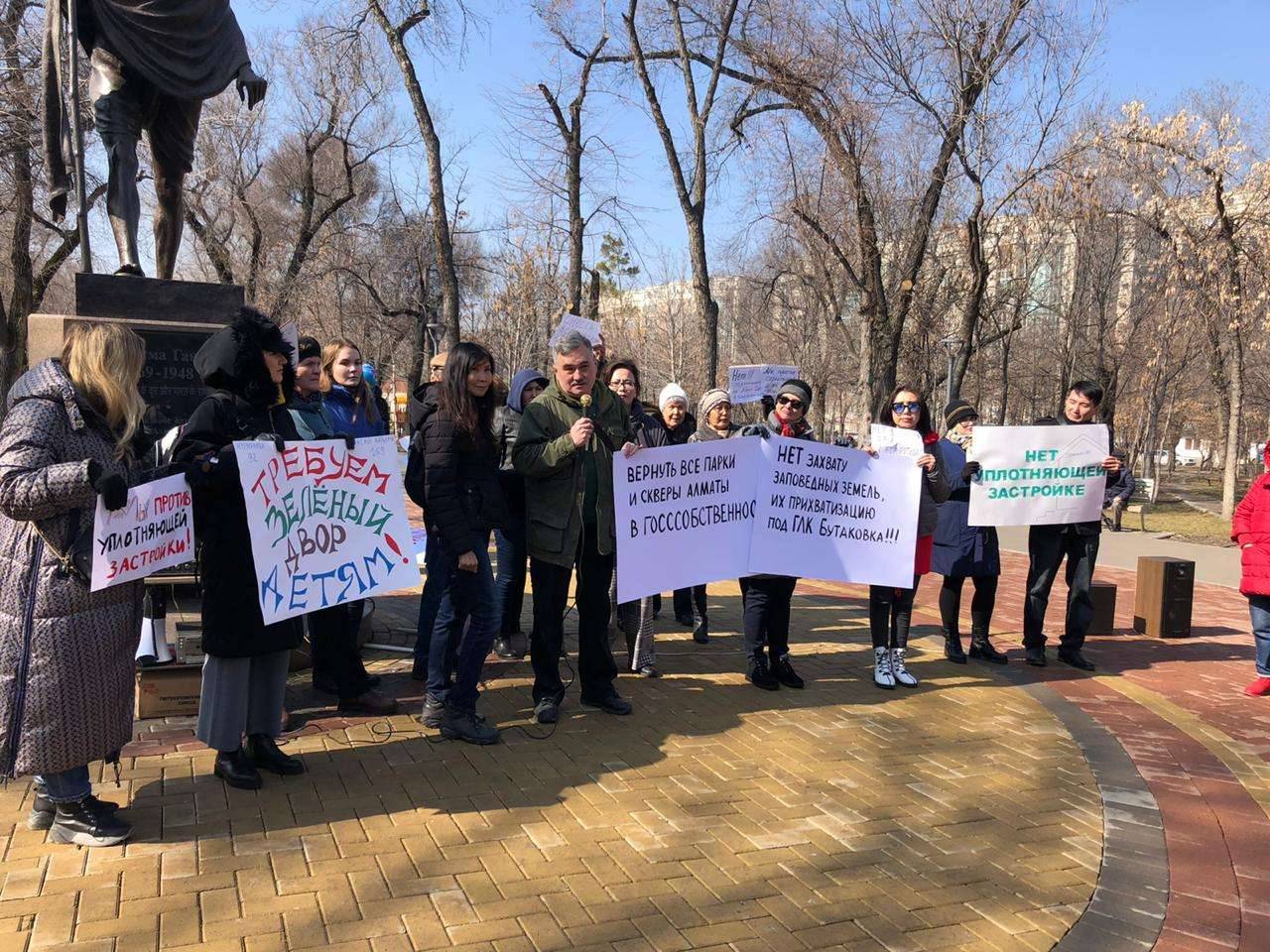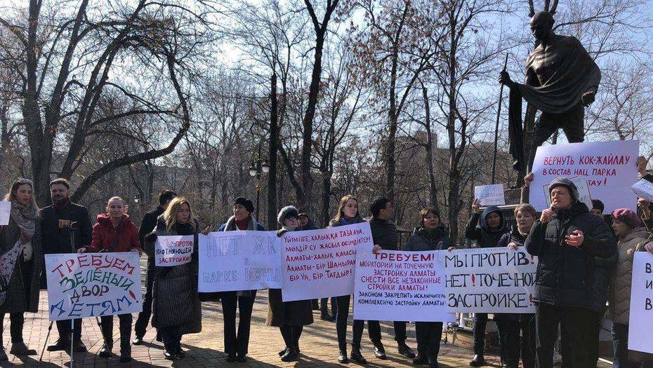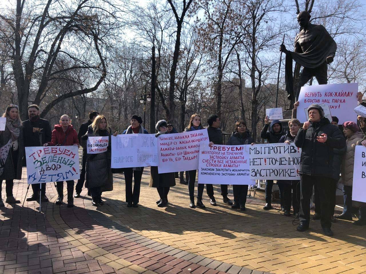 В Алматы 29 февраля прошёл санкционированный митинг против точечной и уплотнённой застройки города.