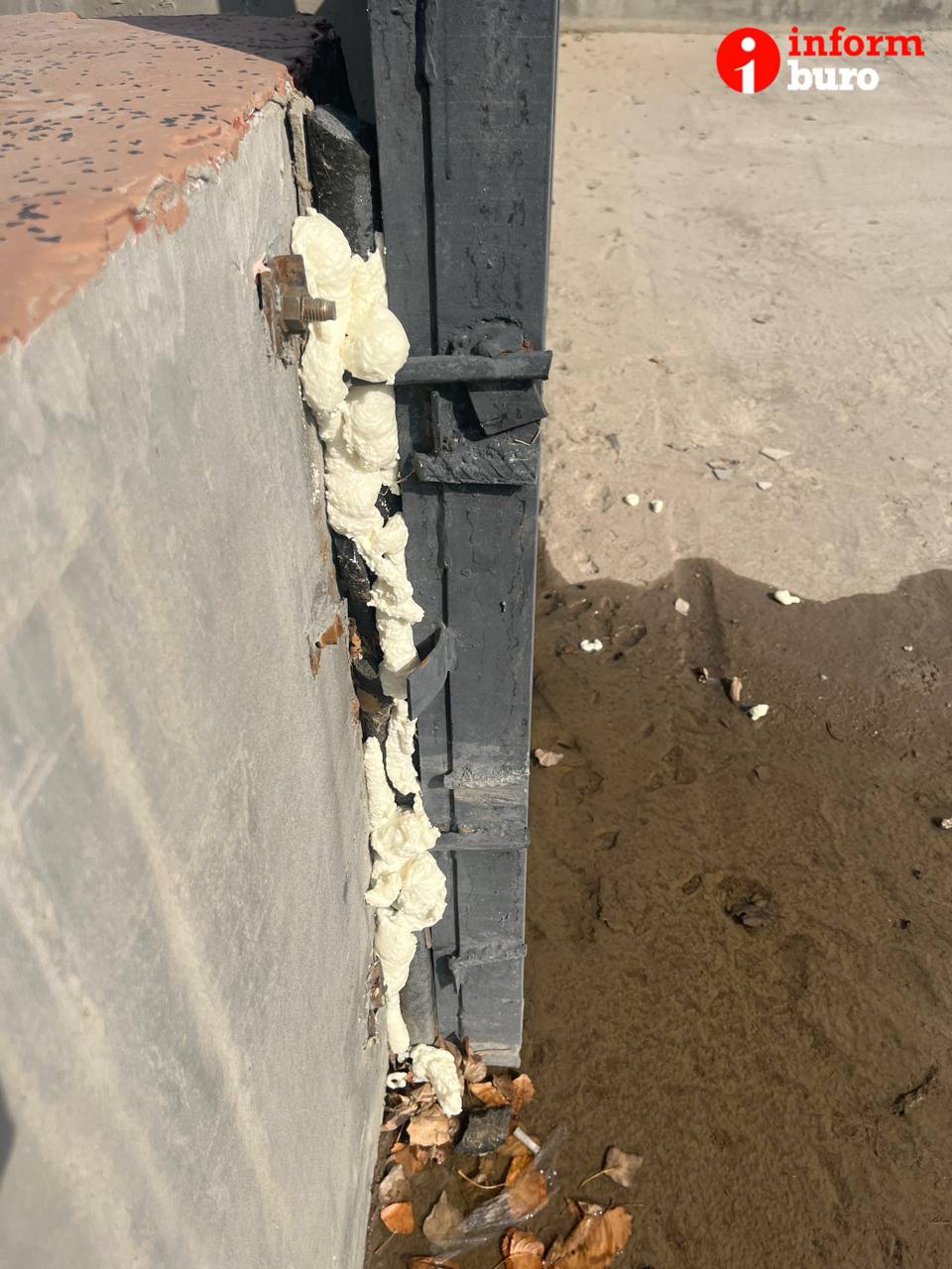 "Здесь недавно проводились гидротехнические испытания в течение 24 часов. Так как проект не завершён, временно использовали пену, чтобы закрыть отверстия. После этого будут установлены специальные резиновые прокладки, и все гидрозатворы будут работать в штатном режиме", – заверил Сергей Житинёв.