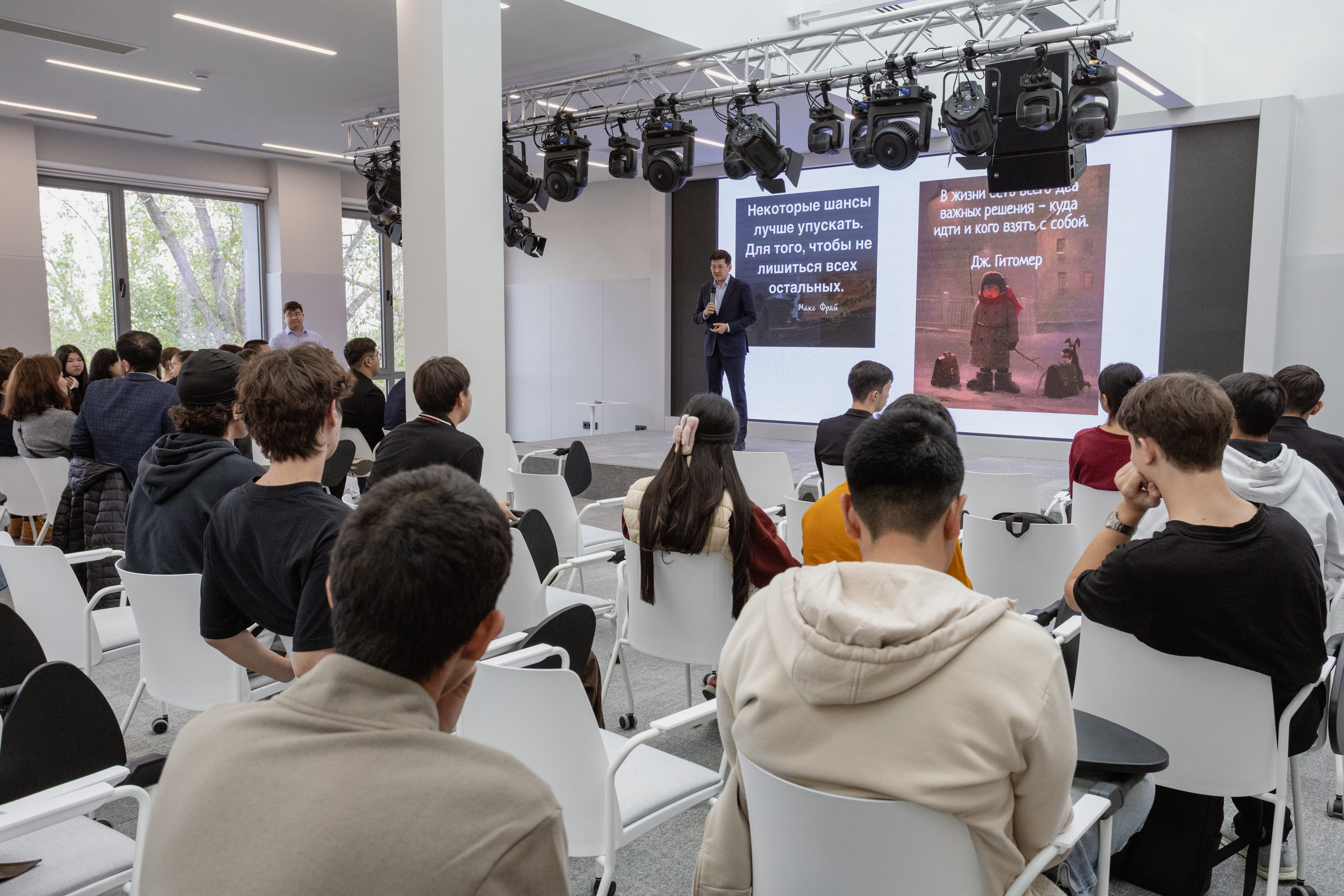 "Открытие шахматного клуба в Университете Нархоз очень символично проходит во время крупнейшего спортивного события – детского чемпионата мира в Алматы. И, безусловно, эта шахматная площадка в Нархозе станет отличной точкой развития, которая будет ещё больше популяризировать шахматы среди студентов. Я уверен, что здесь будет собираться молодёжь, будут играть, будут проходить соревнования. И для нас это очень приятно", – сказал гроссмейстер Дармен Садвакасов на церемонии открытия.
