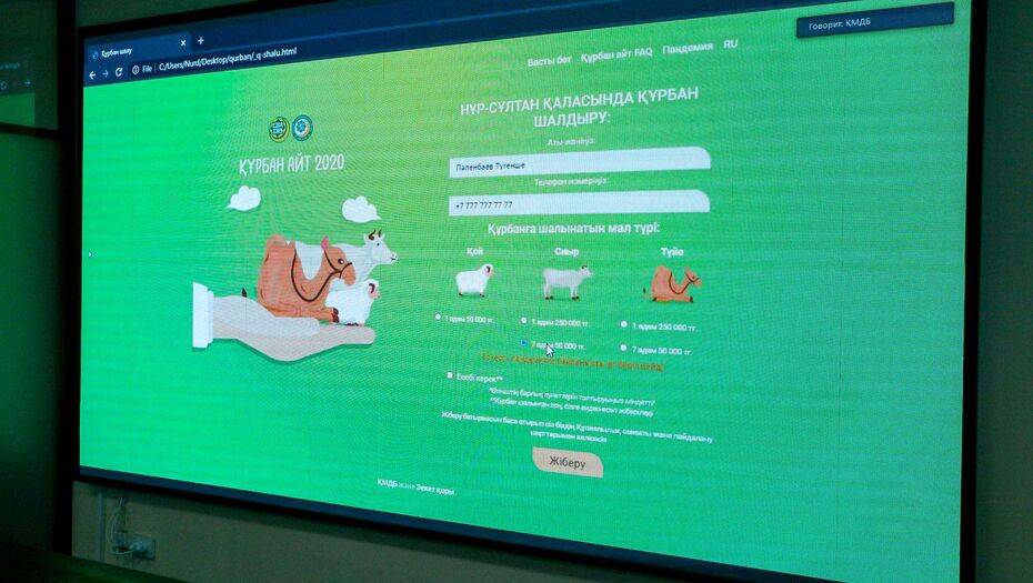 В связи с эпидемией коронавируса верховный муфтий поручил запустить централизованный онлайн-сайт. Сайт qurban2020.muftyat.kz начнёт работу в ближайшие дни. Технический контроль над сайтом будет осуществлять фонд "Зекет".