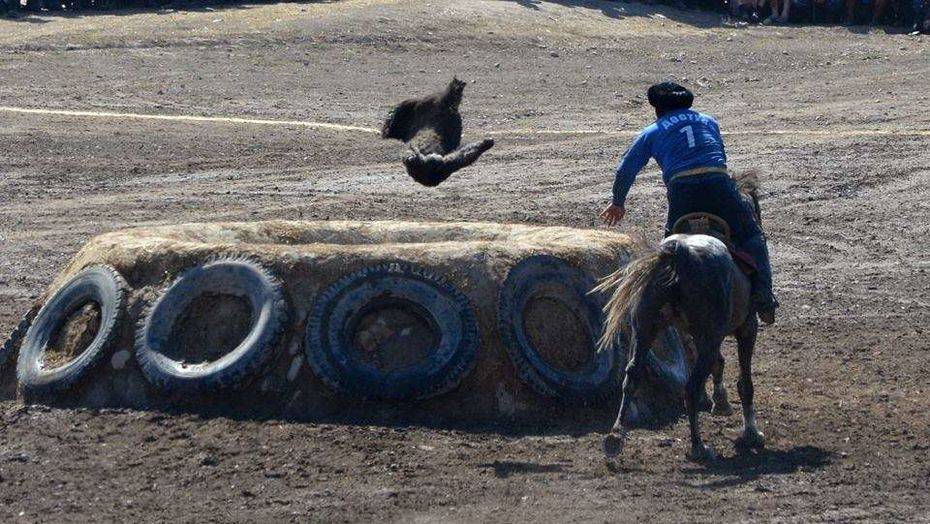 "Организаторы заменили тайказаны на пластиковый круг, расположенный на земле. Диаметр чуть меньше трёх метров. Круги, в которых будет разыгрываться муляж туши козла, также отмечены пластиковым кругом, размеры которого мы изучаем", – отметил Бегалиев.