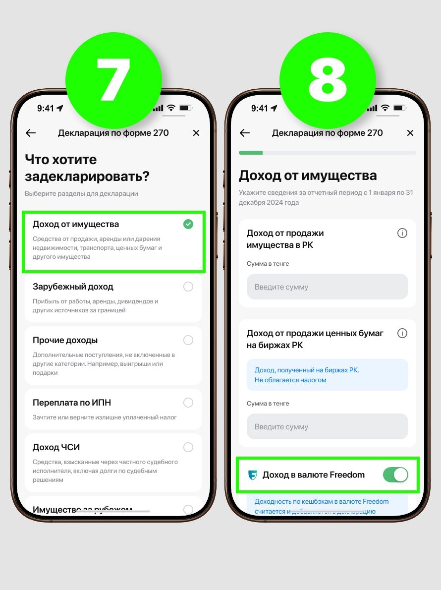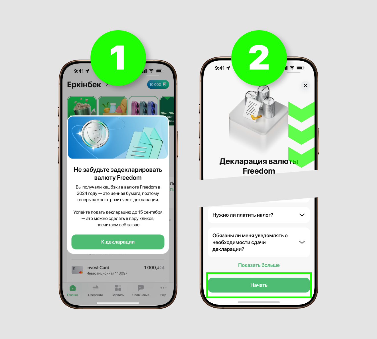 Стоит отметить, что для клиентов Freedom Bank, впервые получивших доход от прироста стоимости по реализации ценой бумаги – инвестиционной валюты Freedоm в 2025 году, обязательства по декларированию дохода возникнут только в следующем году. Банк заранее проинформирует таких пользователей о сроках и порядке подачи декларации.