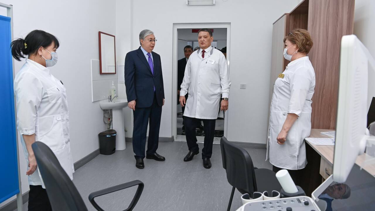 Главе государства рассказали, что в недавно построенном медицинском учреждении на учёте состоит 125 тысяч человек. Сельская поликлиника ежедневно оказывает профилактическую, экстренную, неотложную и плановую медицинскую помощь. Поликлиника оснащена современным высокотехнологичным оборудованием. Жителям района медуслуги оказывают более 260 врачей, средних и младших медицинских работников.