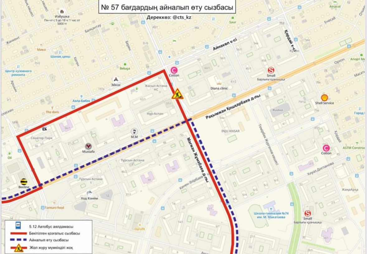 Изменения связаны с ремонтом дорог на улице Айнаколь и проспектах Жумабаева и Кошкарбаева.