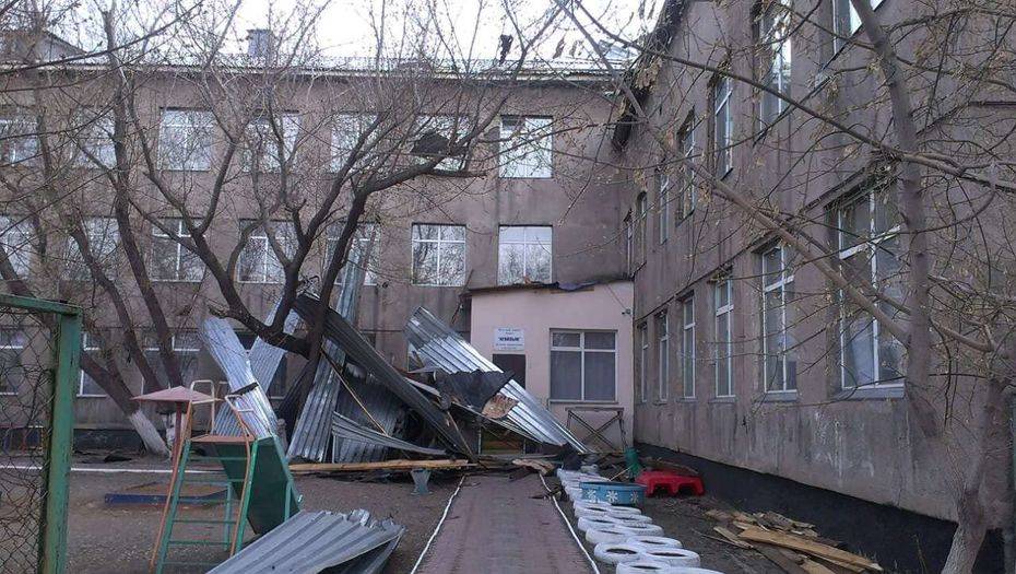 В Караганде сорвало кровлю с трёхэтажного здания средней общеобразовательной школы №11 по улице Ишимская (на площади 250 м2) и пятиэтажного жилого дома по улице Зелинского (15 м2).