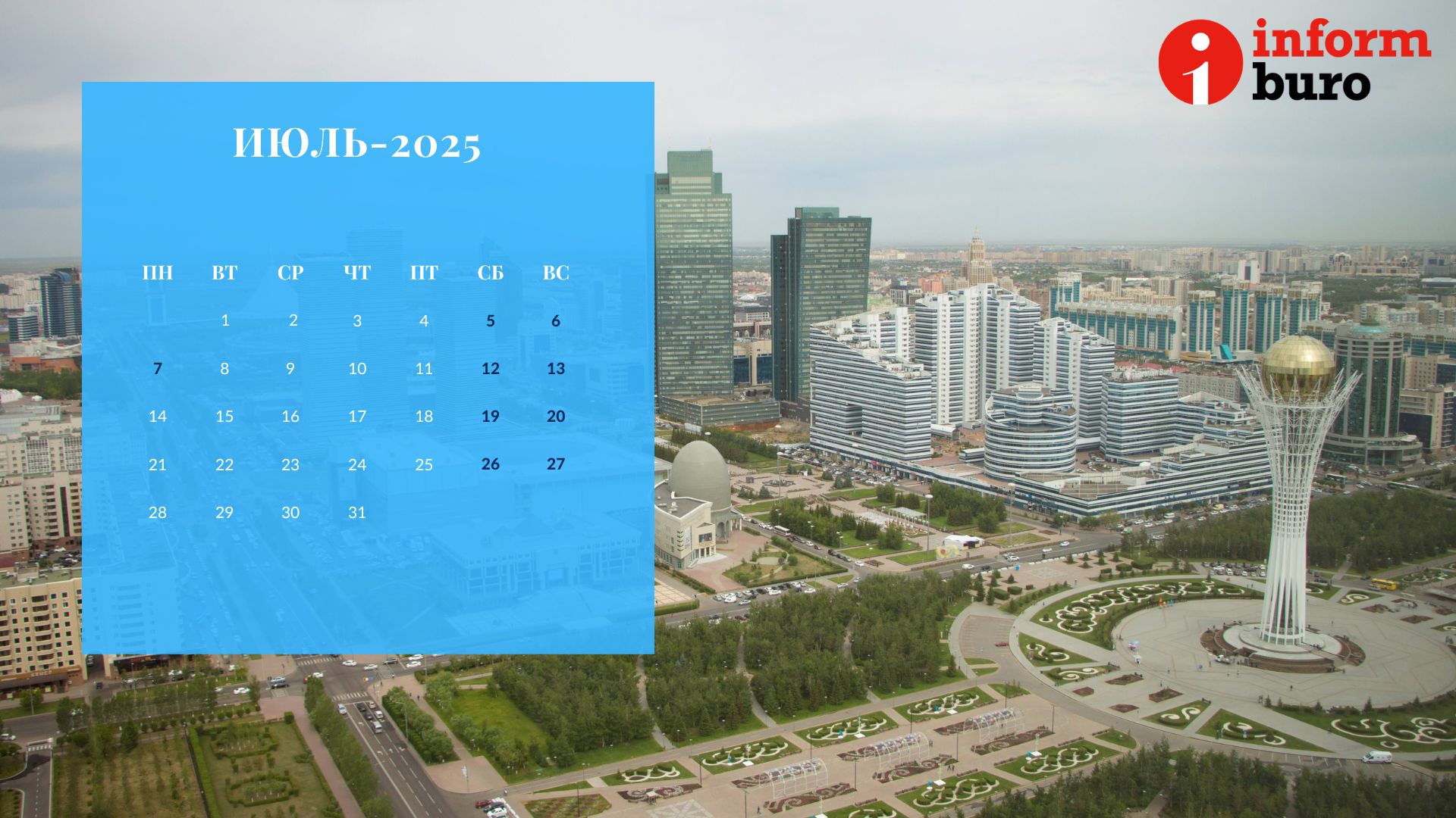 В июле 2025 года у казахстанцев, работающих пять дней в неделю, будет 22 рабочих и девять выходных дней.
