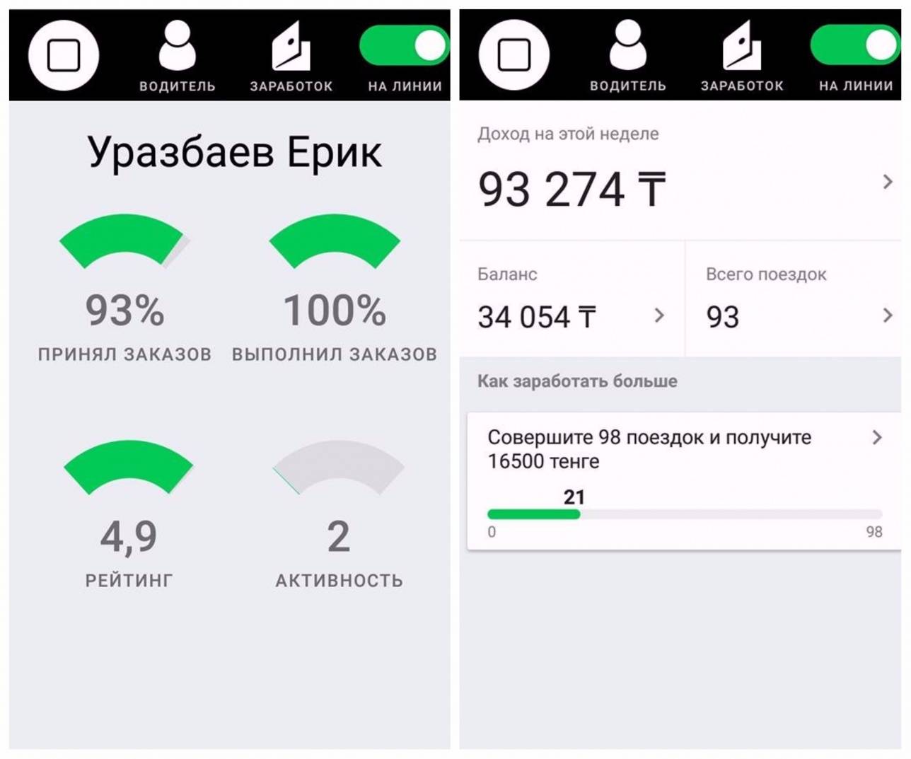 Алматинец Ерик Уразбаев на личном примере показал, сколько может заработать водитель Uber. Его заработок за неделю составил 93 тысячи тенге, при выполнении 100% принятых заказов.