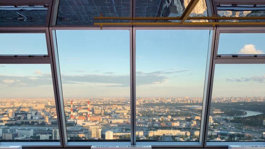 "Москва-Сити" – развивающийся деловой район в Москве на Пресненской набережной. Смотровая площадка на башне "Око" находится на высоте 354 метра и называется "Выше только любовь".