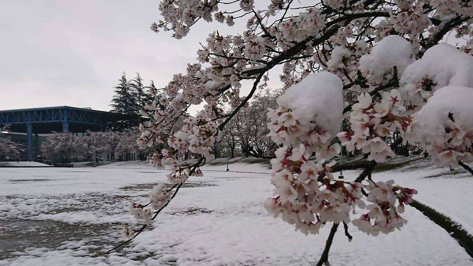 В Японии в префектуре Фукуи впервые за 17 лет в апреле выпал снег. Снегопад совпал с сезоном цветения сакуры, сообщает TJournal.