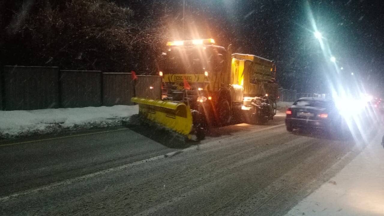 С начала сильного снегопада 143 пескоразбрасывателя обрабатывают дорогу противогололёдными материалами. По данным на 18.00 уже использовано 1624 тонны, а также 122 м3 жидкого реагента.